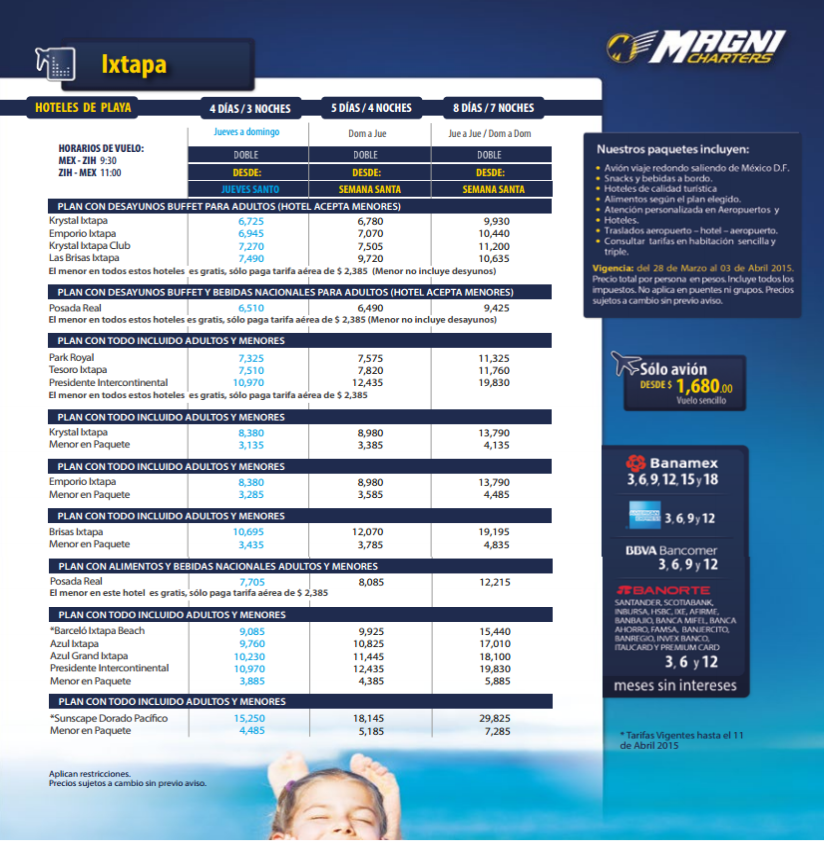 Magnicharters -2014 -20131999-1697 8590-7561 5601-1493 Las tarifas publicadas son por persona (no aplica puentes,dias festivos ULTIMA SALIDA DE TARIFA MENOR GRATIS NOV 28