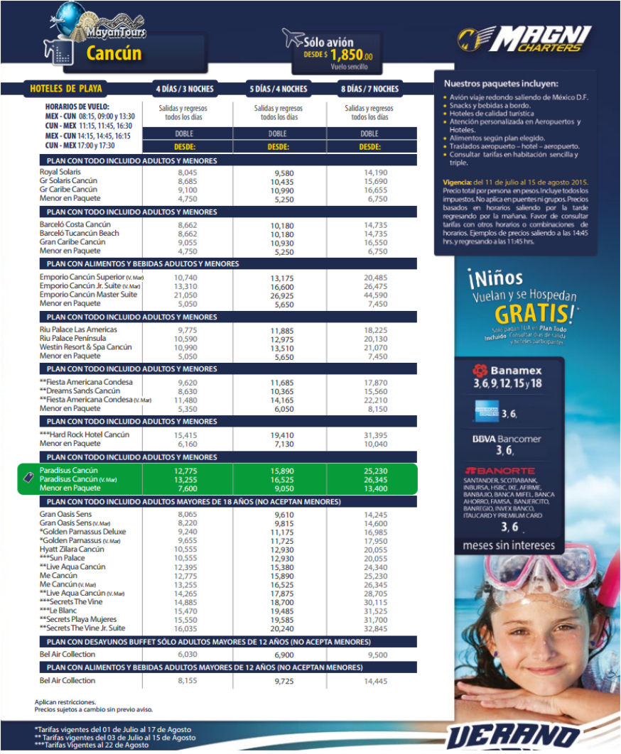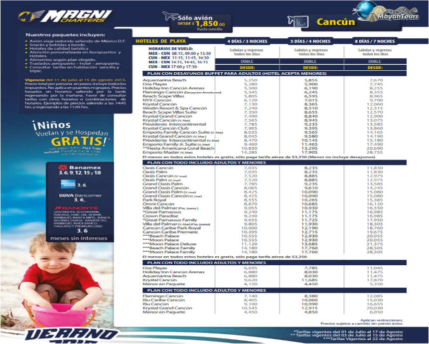 Magnicharters -2014 -20131999-1697 8590-7561 5601-1493 as tarifas publicadas son por persona (no aplica puentes,dias festivos ULTIMA SALIDA DE TARIFA MENOR GRATIS NOV 28