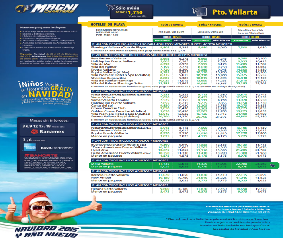 MAGNIHARTER VALLARTA 201 navidad y año nuevo 4 , 4a y 7a noche gratis en hoteles BARCELO Y 6 MESES SIN INTERESES...,,AVION Y PAQUETES A